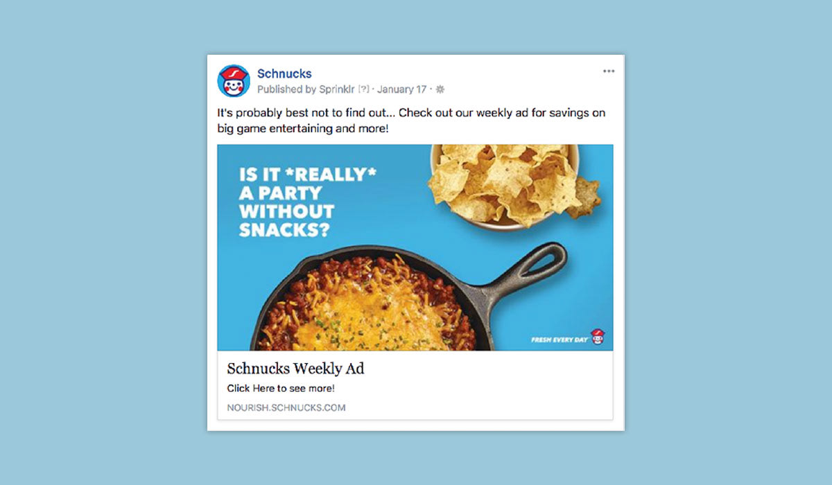 Social media post design and copywriting for Schnuck Markets campaign.